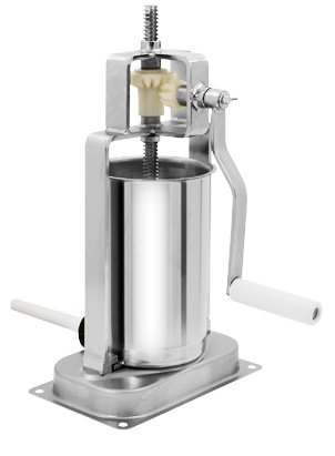 For those customers looking to enjoy their first sausage making experience, this 5 Lb. Capacity Sausage Stuffer is just for you! Its size and simplicity is perfect for the beginner sausage maker. This model features a Stainless Steel Cylinder, Threaded Rod, Base, Air Valve and a Chrome Plated Frame. Just like our own Stainless Steel model, the resin gears prevent the friction of metal against metal.