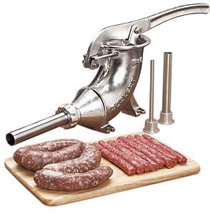 Stuffer comes with three stainless steel stuffing tubes (10, 20, 30mm) for making anything from breakfast links to kielbasa. 3lb. capacity.